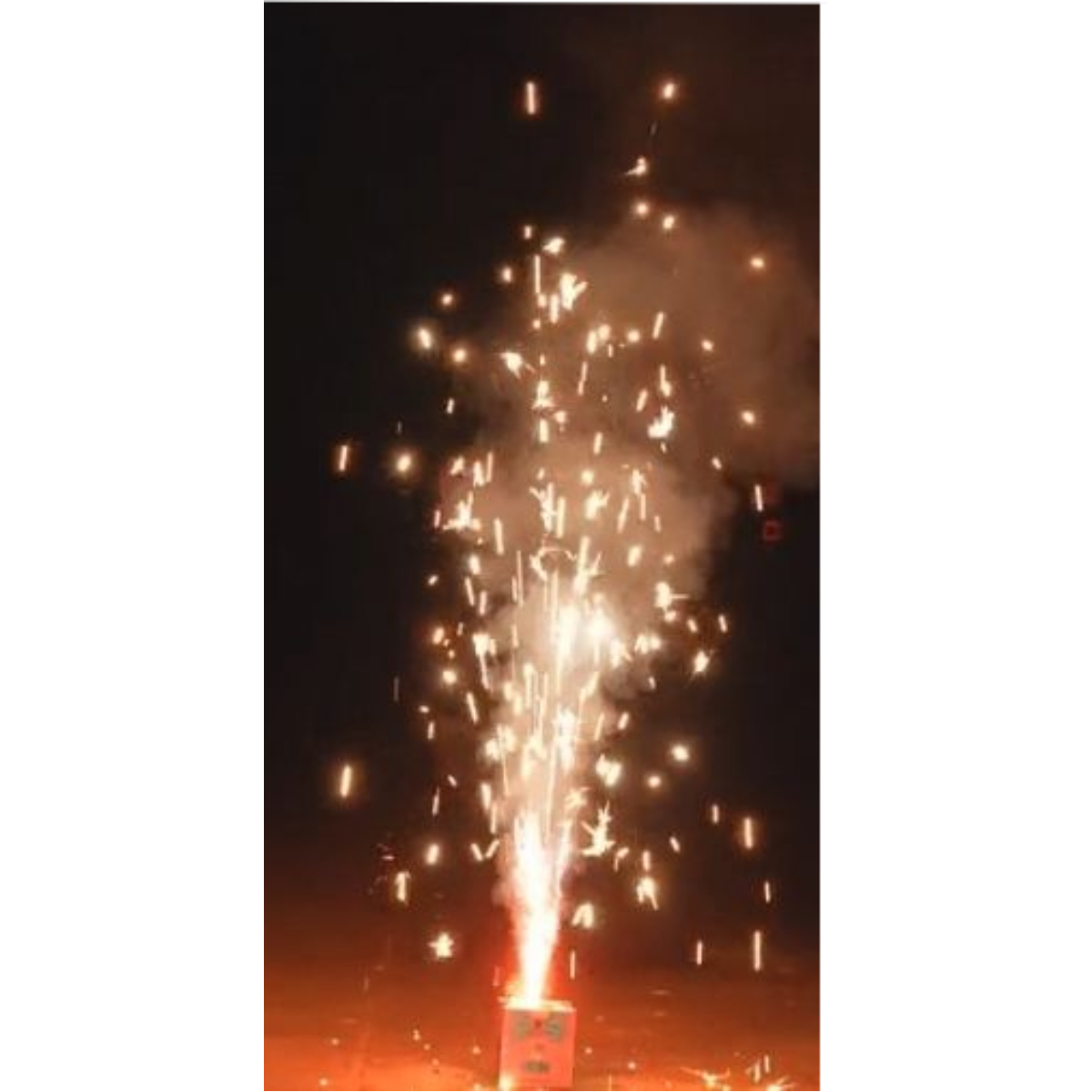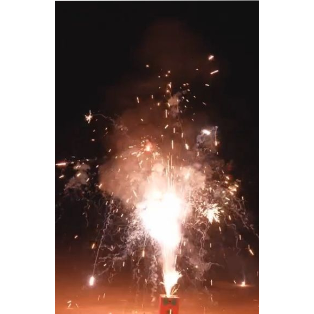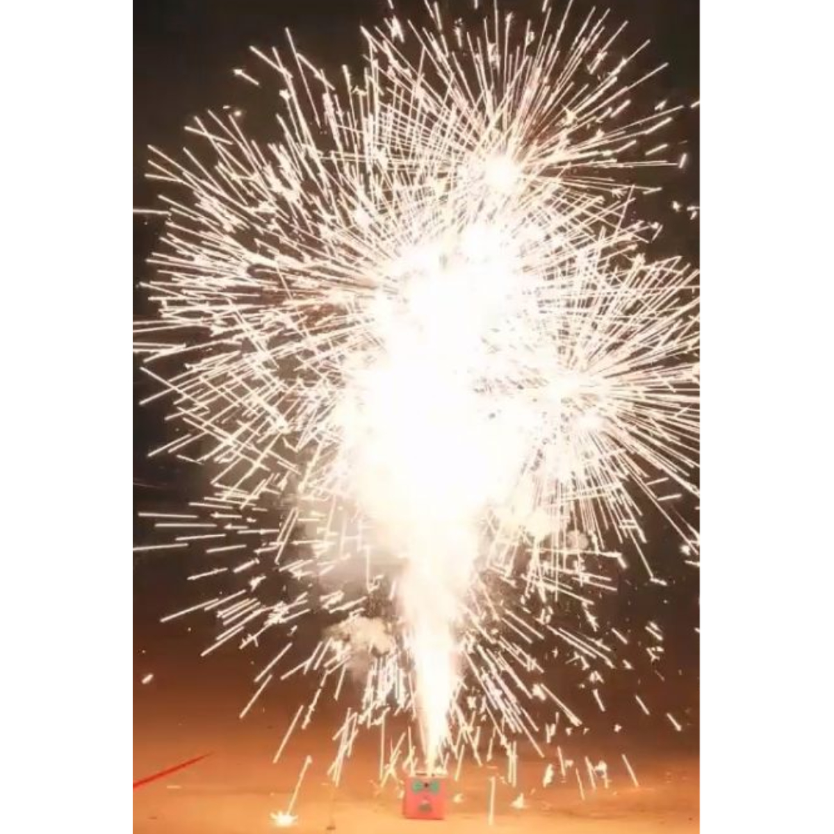 Затем фонтан переходит в серебряные трещащие искры с красными и зелёными огнями у основания, а далее появляются искры-стрелы и ниспадающие серебряные звёздочки. Комбинация эффектов формирует красивое динамичное зрелище.