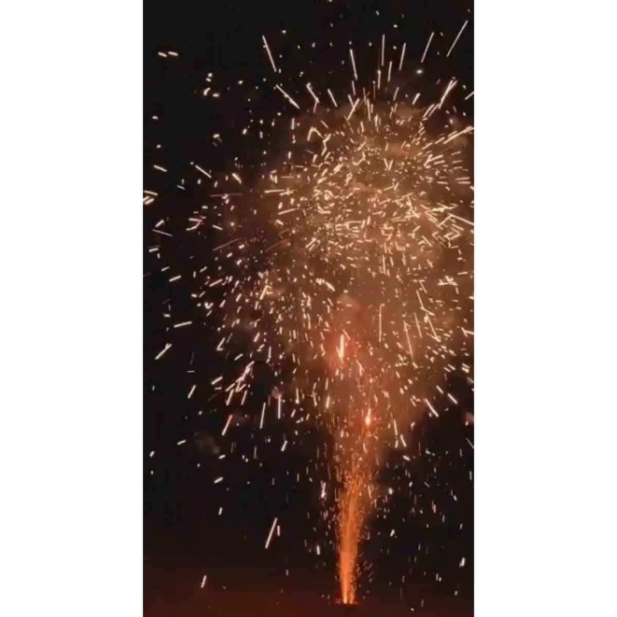 Финал украшают золотые трещащие огоньки и крупные серебряные разлетающиеся искры, создавая мощный акцент в завершении шоу. Отличный выбор для праздничного вечера и ярких впечатлений.