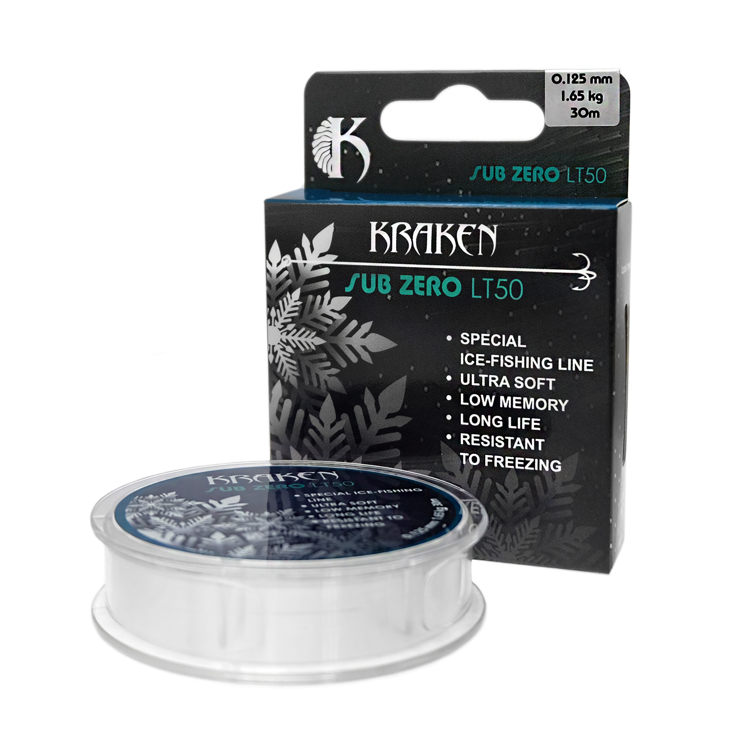 Леска SUB ZERO LT50 отличается хорошей устойчивостью к износу и истиранию. Монофил не впитывает влагу, благодаря чему долго не обмерзает. Прозрачная леска почти незаметна в воде и не отпугивает осторожную рыбу. Мягкая и эластичная леска Kraken не имеет памяти и отличается низкой растяжимостью.
