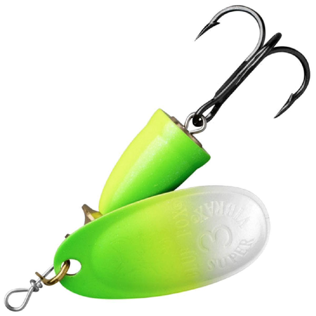 Изготовлена из механически обработанной латуни с покрытием серебром, медью и лаком. Оснащена острым, прочным и надёжным крючком VMC, рассчитанным на продолжительное использование.
