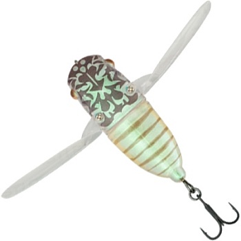 Корпус состоит из двух частей: жёсткая головная часть оснащена прозрачными или затемнёнными крыльями, а гибкий хвост выполнен из прочного силикона. Такая конструкция придаёт приманке реалистичное поведение на воде, привлекая даже самых пугливых хищников.