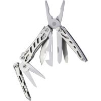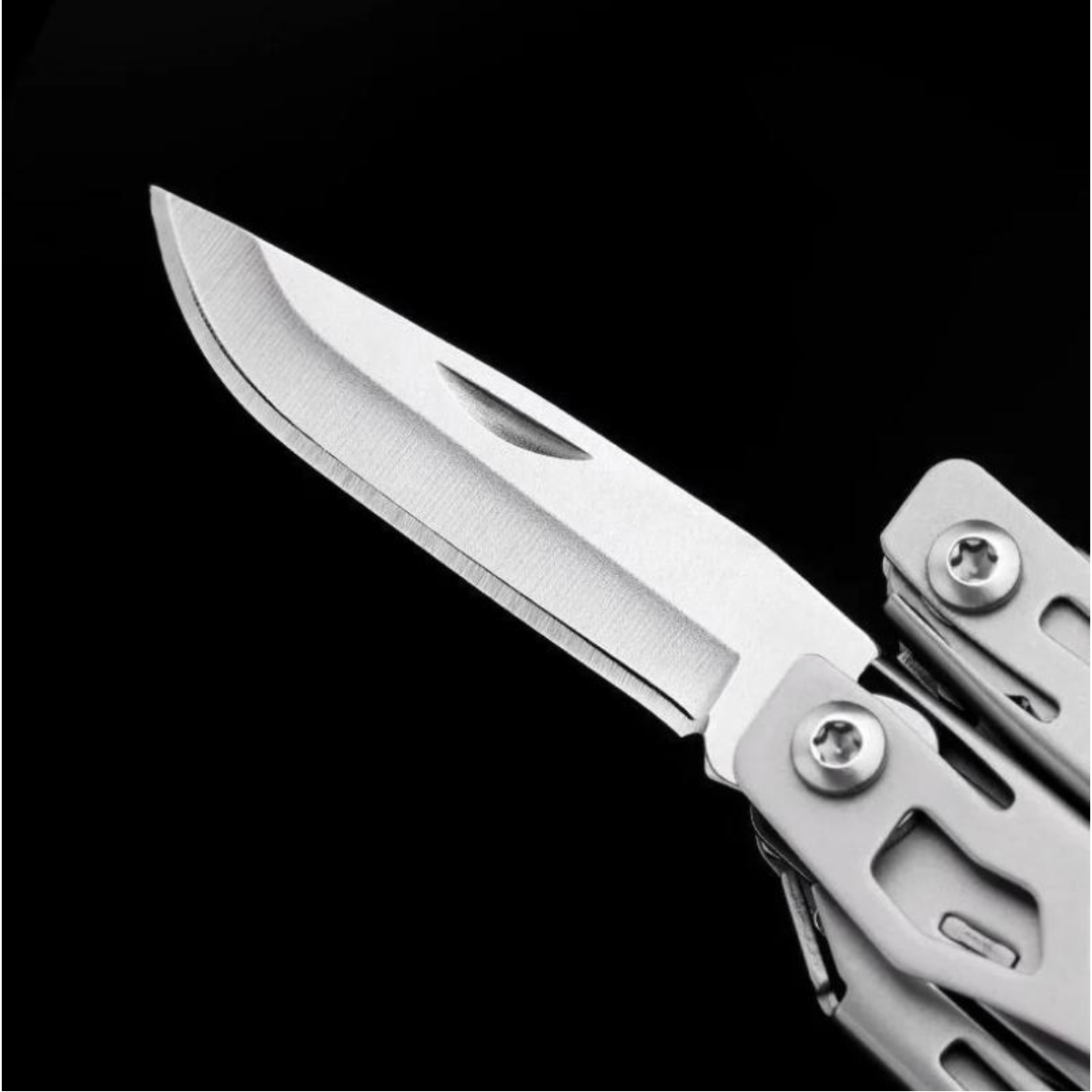 В арсенале инструмента — открывалка для бутылок и консервных банок, крестообразная отвёртка, ножницы, нож и другие функции, полезные в походах и быту. Это практичное решение для мелкого ремонта, ухода за одеждой и быстрой помощи в непредвиденных ситуациях.