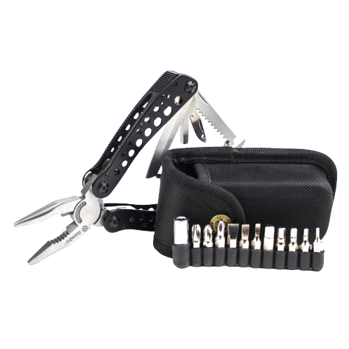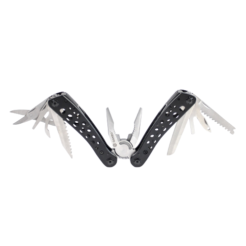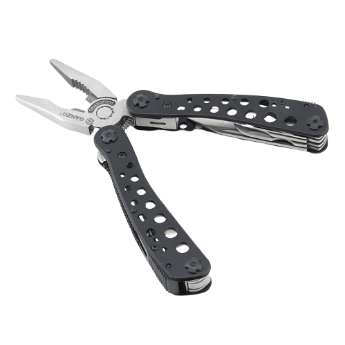 Помимо плоскогубцев, в пустых изнутри ручках инструмента располагаются такие инструменты как пила, ножницы, два ножа с заточкой разного типа (гладкий и серрейторный), шило, открывалка для банок и бутылок, отвертка. В модели Ganzo G204 также предусмотрен держатель для съемных насадок отвертки.