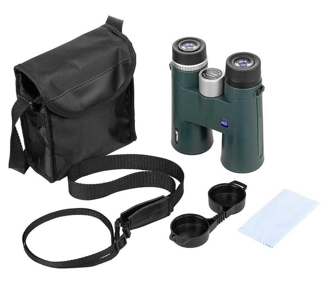 В комплект входит удобный чехол сумка с ремнем для носки на шее, салфетка для протирки бинокля.