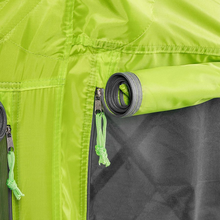 - Благодаря надежной конструкции и материалу Polyester 210D с полиуретановой пропиткой 3000 мм, шатер хорошо переносит дождливую погоду и ветер.