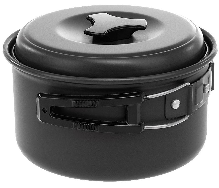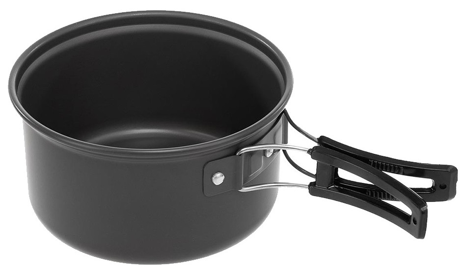 Набор рассчитан на 1-2 человека. Имеет откидные ручки с термоизолирующим покрытием, которые экономят объем при транспортировке, делая использование посуды более комфортным. Набор поставляется с нейлоновым мешочком для транспортировки и хранения.