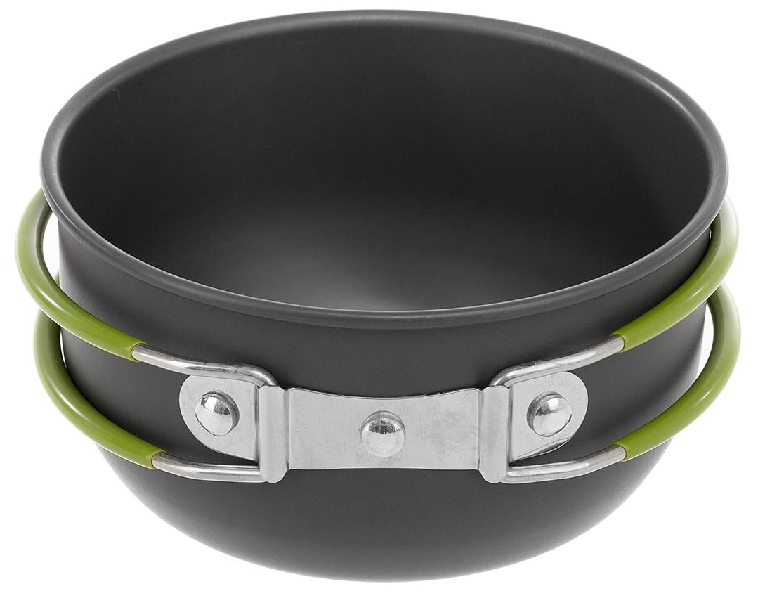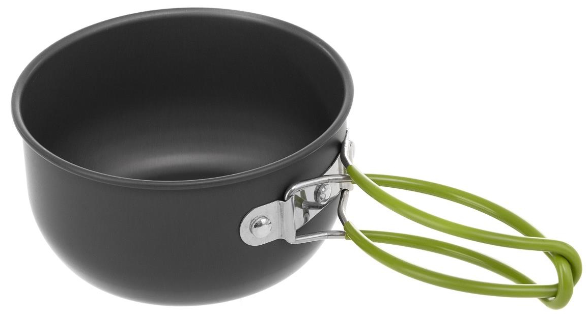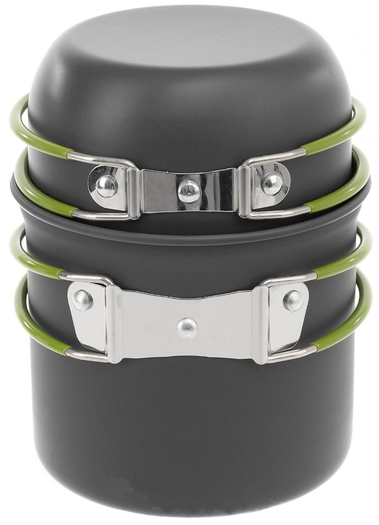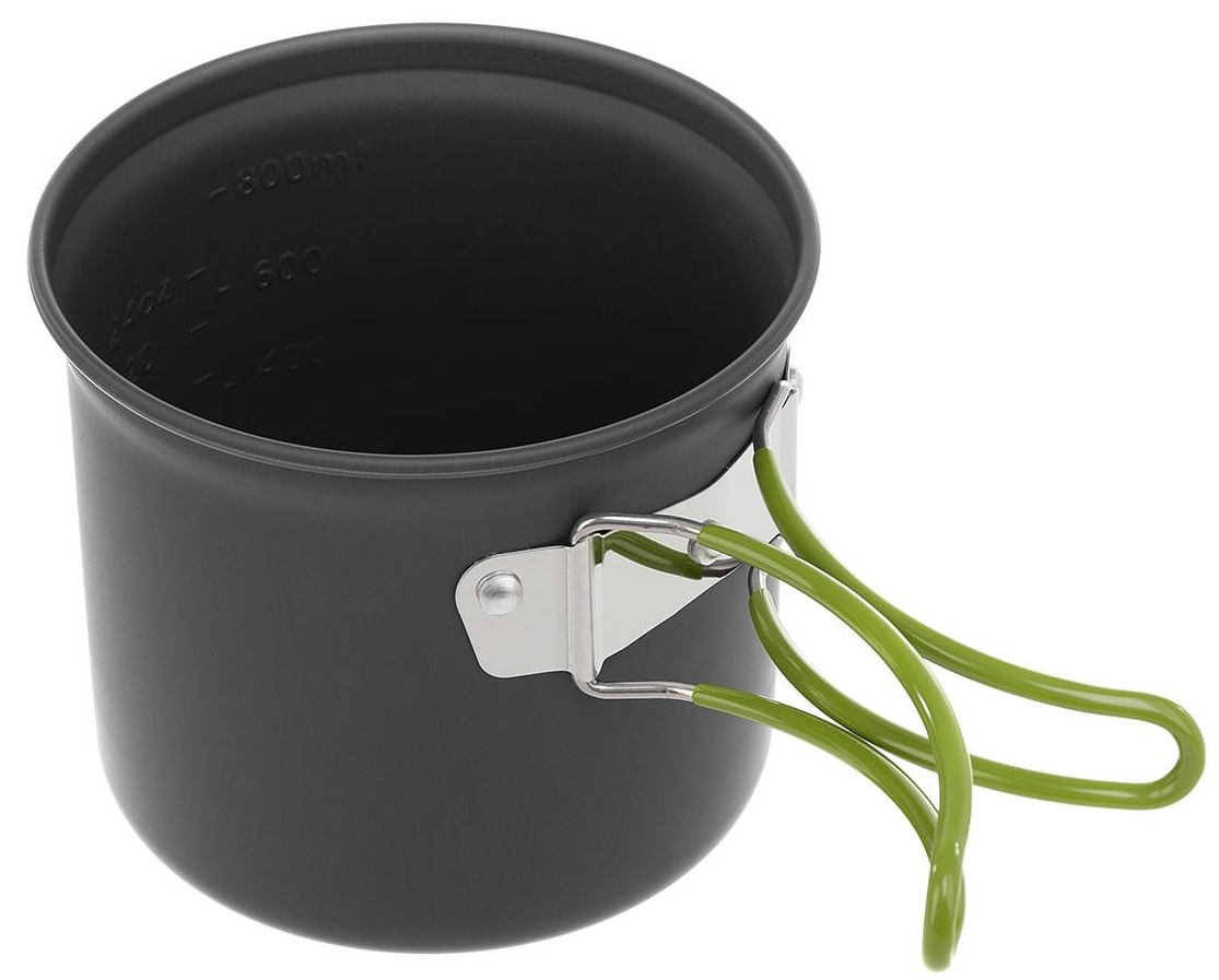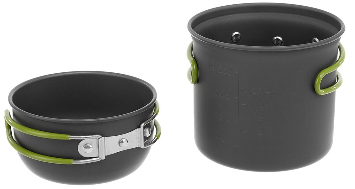 Посуда имеет откидные ручки с термоизолирующим покрытием, которые экономят объем при транспортировке, делая использование посуды более комфортным. Набор поставляется с нейлоновым мешочком для транспортировки и хранения. Вес набора 750 гр.