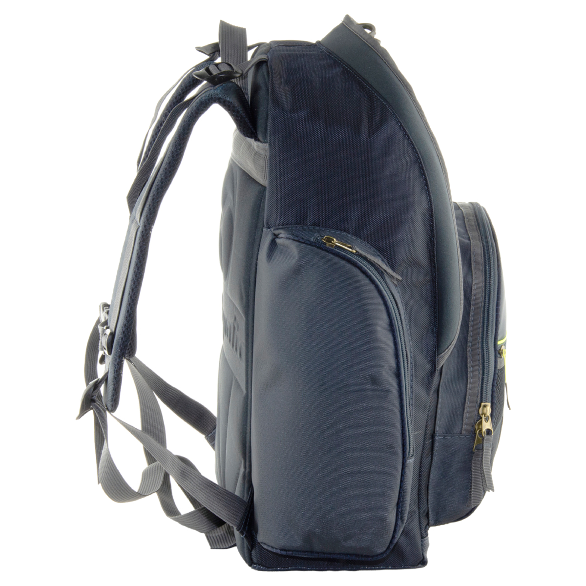 Вход в основное отделение защищен от влаги неопреновой лентой. Рюкзак имеет стандартную подвеску с грудной регулировкой и уплотненную спинку.