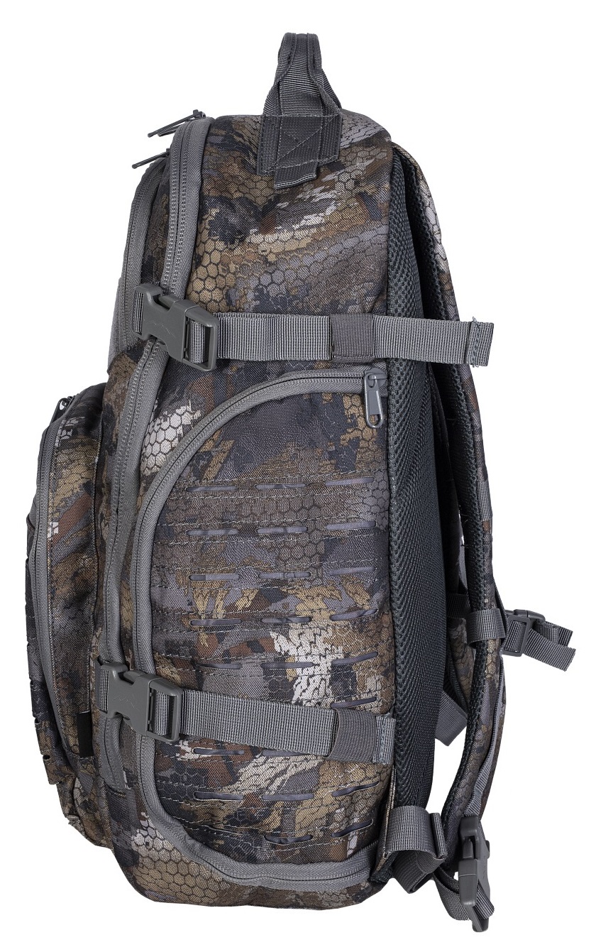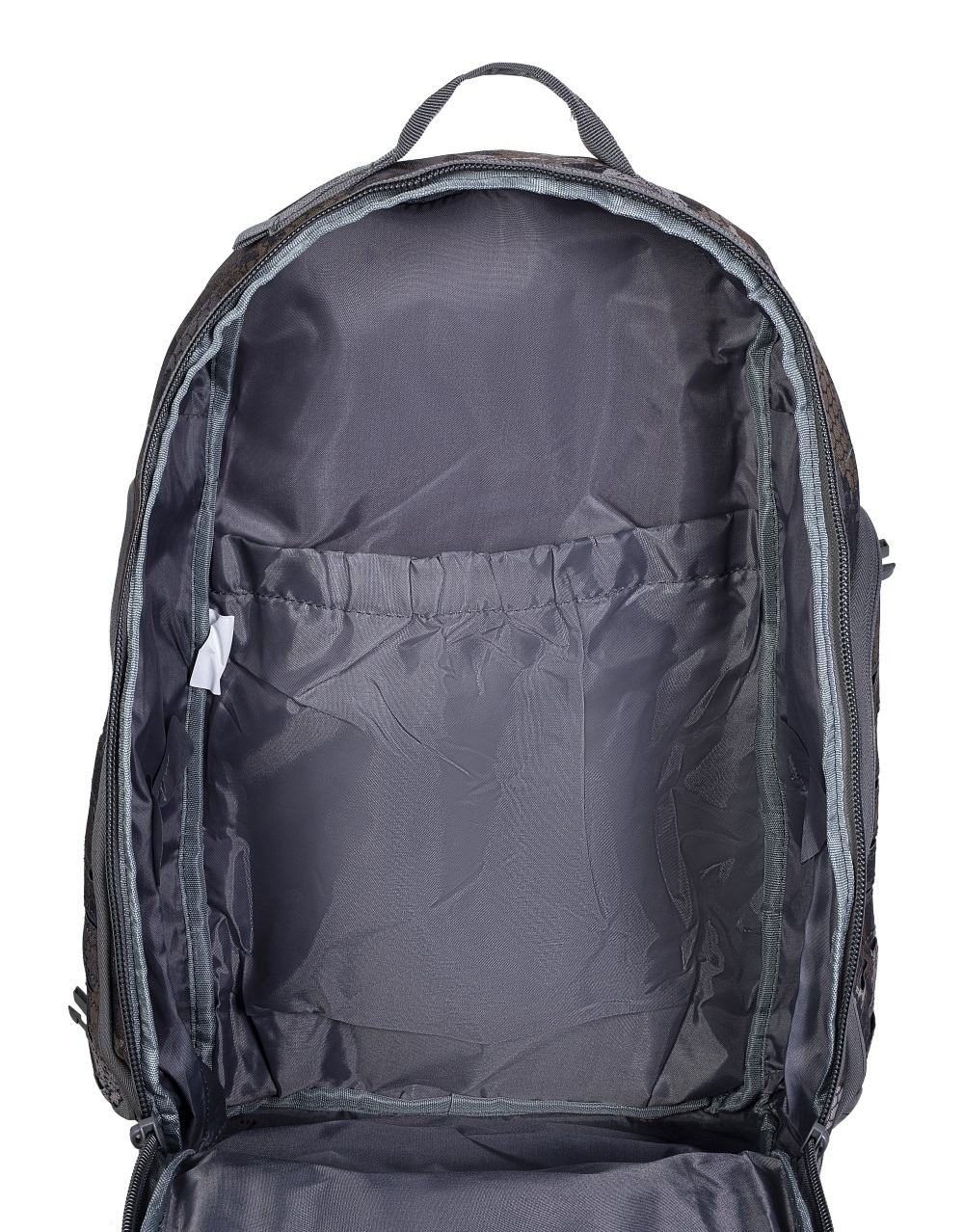 Рюкзак отлично подойдет для охоты, рыбалки и туризма. Он выполнен из 100% полиэстера, который не боится влаги. Рюкзак имеет несколько основных отделений, все они закрываются на молнию, оснащен фиксирующими ремешками и имеет удобные лямки, которые можно корректировать по своим параметрам.